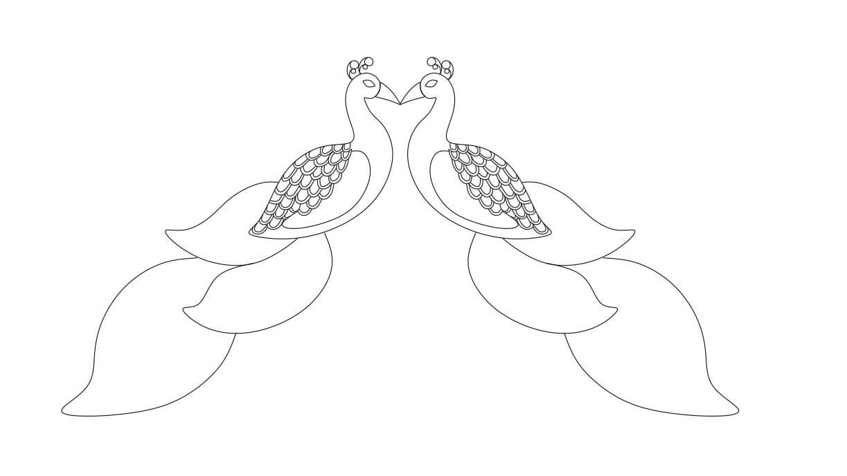 A common representation is a bangle of two elephant heads or two lion heads facing one another. Similarly the peacocks must face each other. This was her sketch at our studio.